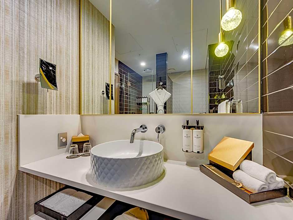 This room offers city views and a modern bathroom with a rain shower and French amenities. It features a work desk, high speed internet, an espresso machine, and an LCD television and with a BOSE sound system and iPod connectivity. There is a king Sofitel 'MyBed' featured.
